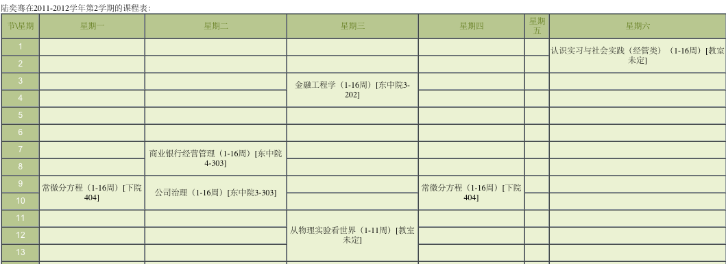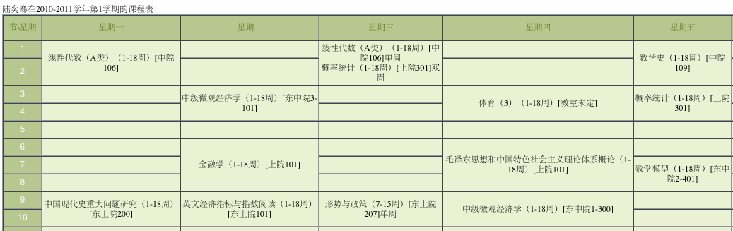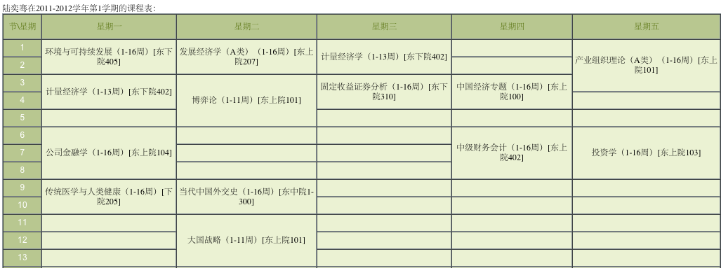 33 东上中下院:军训的时候差点在东上院被四楼掉下来的榔头砸死,距离死亡就50公分,太恐怖了。东上是我上产业组织理论和博弈论的地方,不过经常翘课什么的。东中是我数学长进最大的地方,尤其是东中4-301,我的代数功力都是章璞老师在里面教的。这东西以后可以留作开发智力用。我当时学的时候想,Galois理论这种变态的东西当时是怎么被想出来的啊。东中也是我做美模通宵的地方,我现在还是觉得我的pagerank的思想很不错。东下是上固定收益证券分析的地方,这门课纠正了我很多观念性的错误,实在是我金融功力大增的地方。Fixed income是一个能赚大钱的地方,那种只会炒股票的的确是too simple了。有个问题自修教室开的太少,一到考试前肯定人满。建议学校把东区所有教室开成通宵教室。